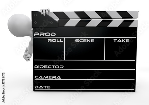 © rugercm, Obraz premium human character appearing from behind a clapperboard