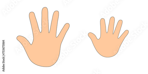 Obraz premium Human children's and adults hands imprint vector isolated set on white background. Human hands.