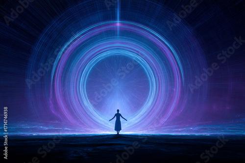 Fototapeta premium Human figure enveloped in Kirlian energy circles, vibrant and dynamic...