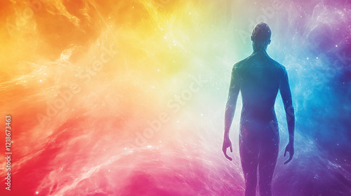 © ABX, Naklejka premium Human figure radiating aura, left side clear