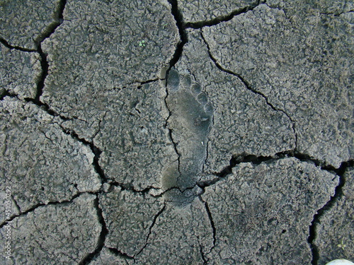 © Yula-i, Fototapeta premium human footprint on cracked ground
