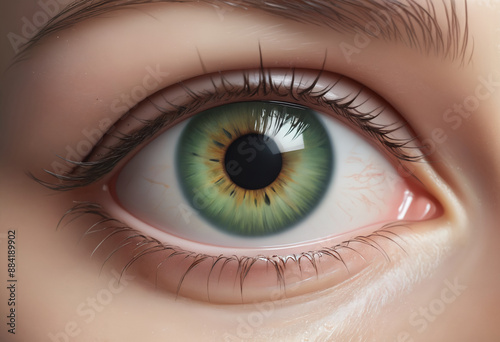 © Giuseppe Cammino, Fototapeta premium Human green eye realistic beautiful closeup zoom
