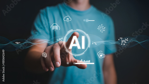 © Photo Gallery, Naklejka premium Human hand activates ai system