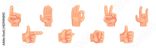 Obraz premium Human Hand Gesture and Pose with Finger Vector Set