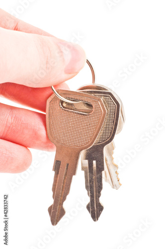 © Valeri Luzina, Obraz premium human hand with keys on white