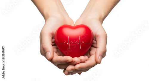 Fototapeta premium Human Hands Cradling Heart with Heartbeat Line