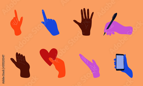 © north100, Obraz premium human hands icons set, flat style isolated vector