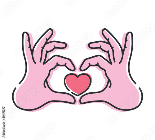 © Mariia, Obraz premium Human hands making heart sign. Line icon isolated on white background. Heart gesture. Vector illustration