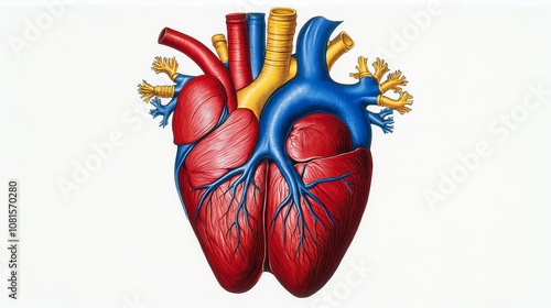 Naklejka premium Human Heart Anatomy Detailed Medical Illustration of Cardiovascular System
