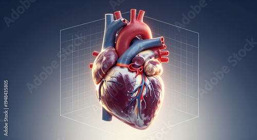 © NanzXy, Obraz premium Human Heart Cross-Section Visualization 3D Render: Anatomy Education Tool