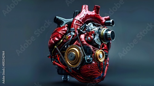 © Nail, Fototapeta premium human heart in the shape of a car engine, Mechanical heart, artificial heart concept, future of transplant medicine