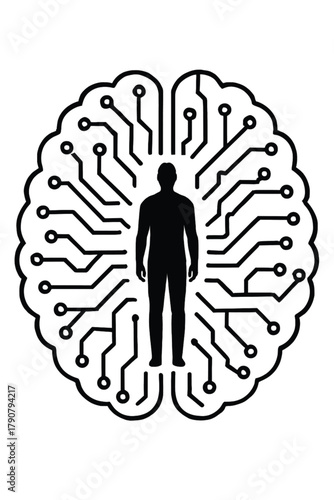 Fototapeta premium Human Inside AI Circuit Network