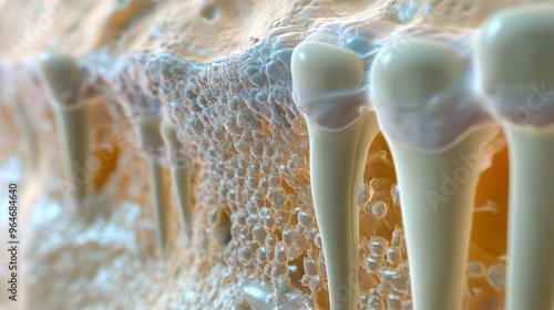© Jakkarin, Obraz premium Human Jawbone with Teeth and Bone Marrow Close Up Macro