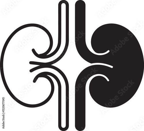 © BakerVai, Obraz premium Human kidneys icon medical illustration outline filled