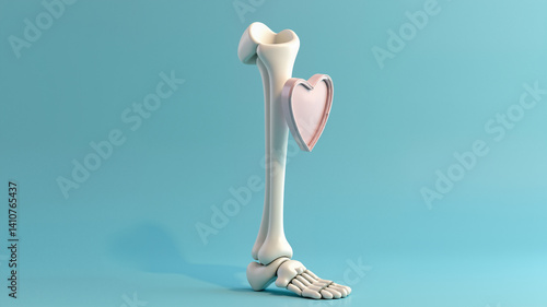 Fototapeta premium Human Leg bone with shield, Medical or healthcare concept background, 3d rendering.