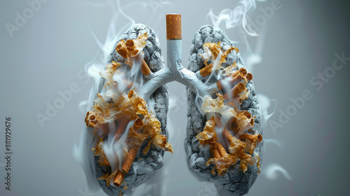 Naklejka premium Human lungs made from cigarettes display the environmental impact on health...