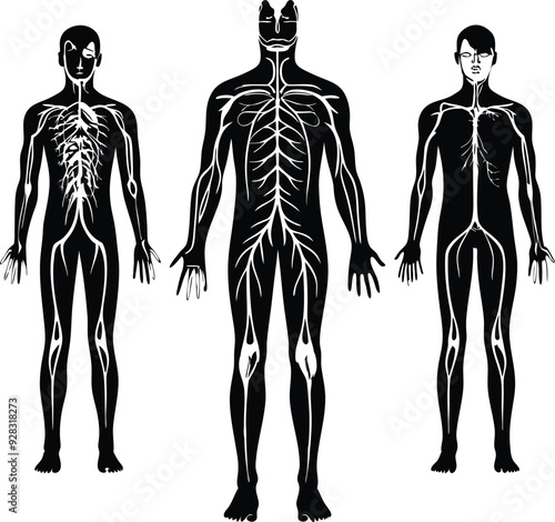 © Parvin, Fototapeta premium Human Nervous Flat Black Silhouette Vector Art Bundle