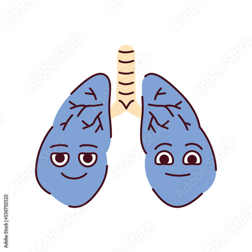 Naklejka premium Human organ lungs color line icon. Mascot of emotions.