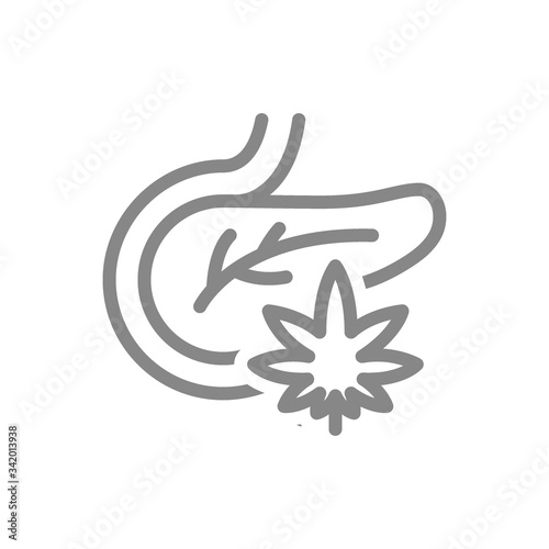 © Lifeking, Obraz premium Human pancreas with marijuana leaf line icon. Cannabis treatment, anesthesia symbol