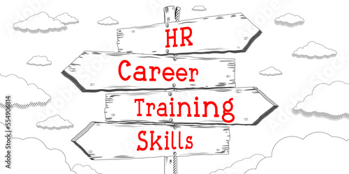 Obraz premium Human resources, career, training, skills - outline signpost with four arrows