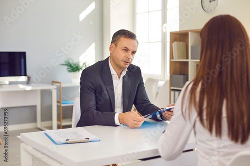 Fototapeta premium Human resources manager conducting interview with confident female candidate...