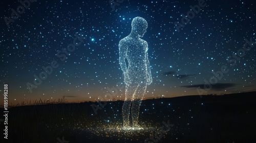 © Thavesak, Obraz premium Human Silhouette Dissolving into Starry Night Background
