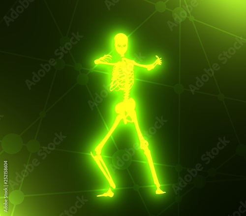 © JEGAS RA, Fototapeta premium Human skeleton in fighting pose. Halloween party design template. 3D rendering