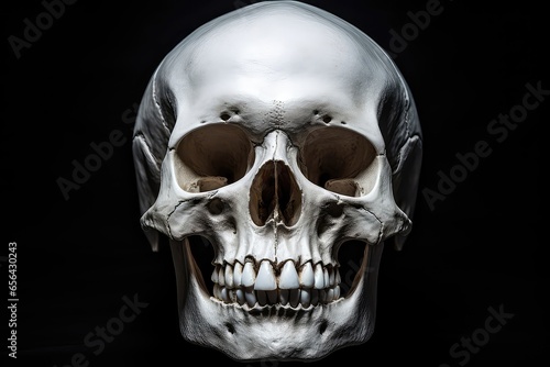 Obraz premium Human Skull Against Dark Background, Creating Striking Visual