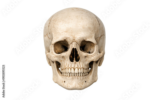 Obraz premium Human skull in front view against transparent background representing anatomy, science, death, and mortality
