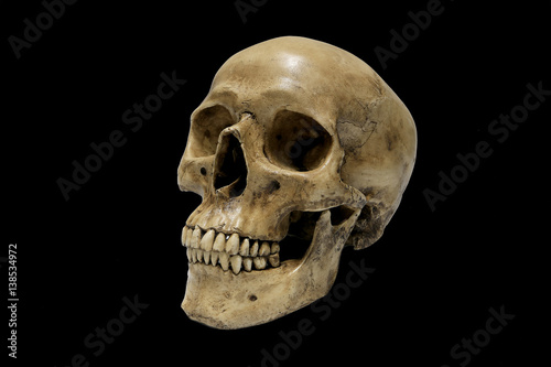 © narin_nonthamand, Naklejka premium Human Skull isolated on black background.