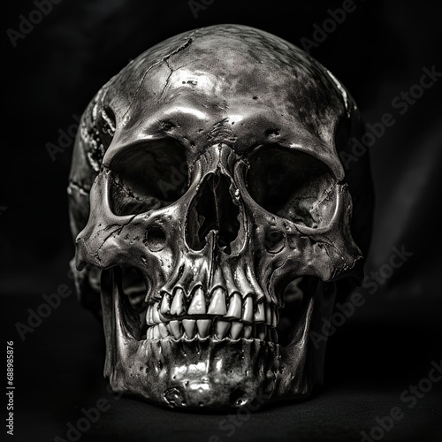 © Shades3d, Obraz premium human skull on black. Generative Ai