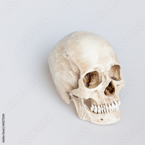 © Ulia Koltyrina, Obraz premium Human skull on isolated white background, by the side
