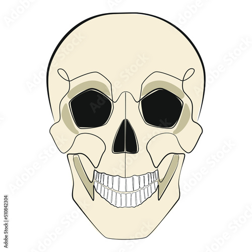 © lululand, Fototapeta premium Human skull one line drawing on white isolated background