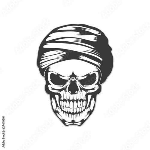 Fototapeta premium Human skull with a bandana in head vector design black and white
