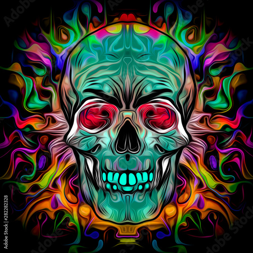 © reznik_val, Fototapeta premium Human skull with colorful spots on white background