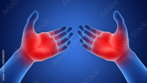 Obraz premium Human Suffering with Severe Pain in Palm Hands Anatomy
