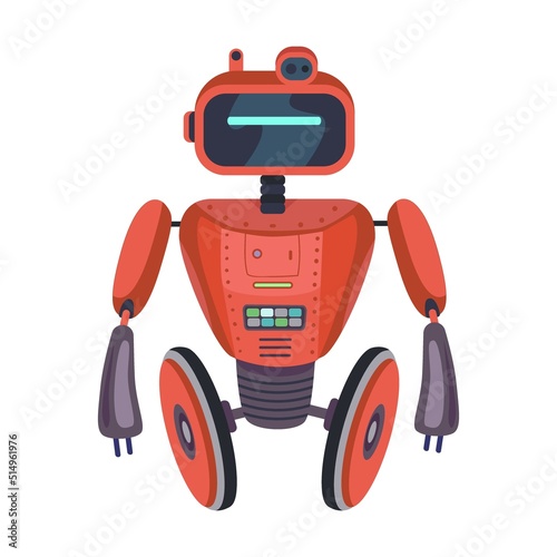 © Bro Vector, Fototapeta premium Humanoid red robotic machine. Colorful robot characters, cyborg, electronic toy. Vector illustration for futuristic art, robotics, engineering