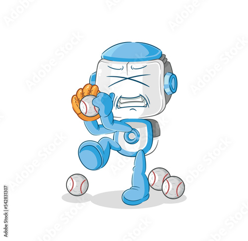 © dataimasu, Fototapeta premium humanoid robot baseball pitcher cartoon. cartoon mascot vector