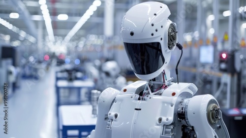 Fototapeta premium Humanoid Robot in Factory Setting