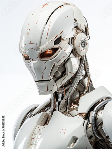 © LeoArtes, Fototapeta premium Humanoid Robot Pointing Finger and Thumb Raised, on White Background, Image for Creative Advertisements, Banners, and General Advertising