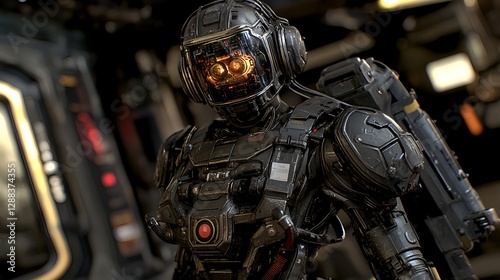 Fototapeta premium Humanoid Robot with Metallic Skin and Intricate Mechanical Parts