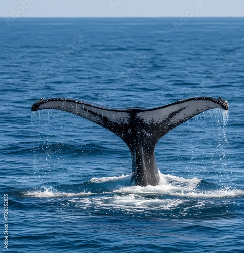 © Bleakhena, Obraz premium humback breaching near icebergs