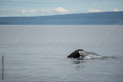 Obraz premium Humbak. Obserwowanie wielorybów w Husaviku na północy Islandii.