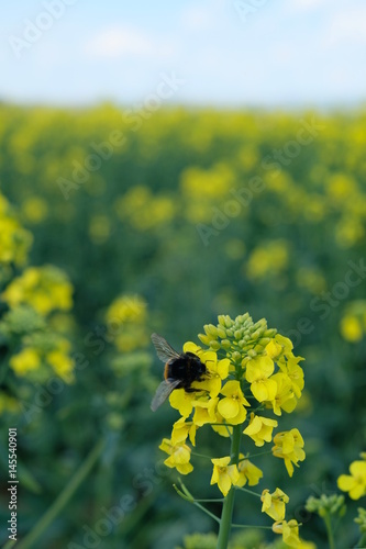 Obraz premium Hummel auf Rapsblüte im Rapsfeld