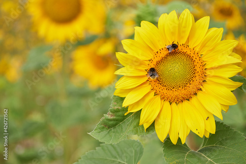 © Michael Fritzen, Fototapeta premium Hummeln an der Blüte einer Sonnenblume