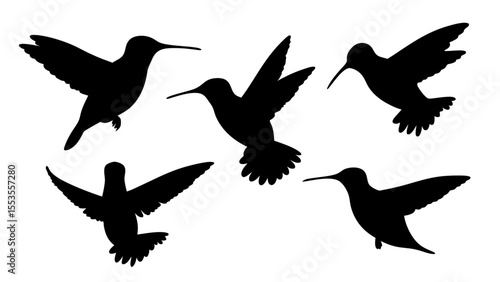 Fototapeta premium humming bird silhouette vector illustration on tranparent background