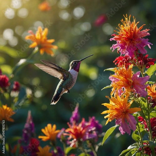 © Lodhra, Naklejka premium hummingbird and flower