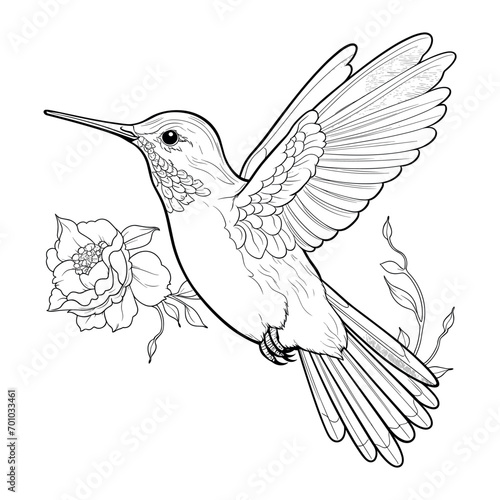 Obraz premium hummingbird and flower illustration coloring page - coloring book
