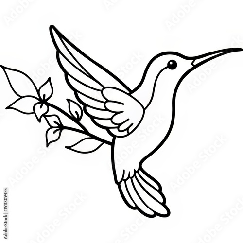 © SoudiaAfrin, Obraz premium Hummingbird and Flower Outline Illustration