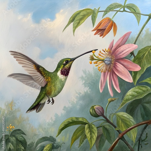Fototapeta premium hummingbird and flowers
